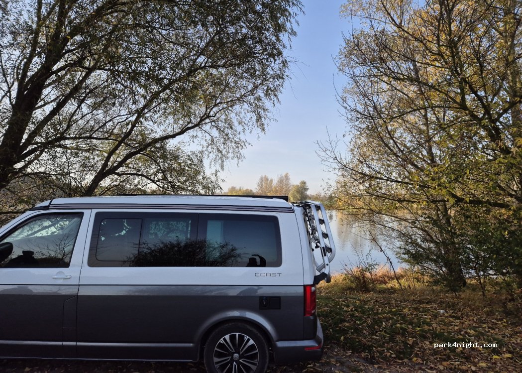 Prinzipiell ein schöner Ort,aber es ist ein Naturschutzgebiet. Die Schilder befinden sich leicht im Dickicht,weswegen sie gerne übersehen werden. Das Ordnungsamt geht regelmäßig Patrouille,gerade wegen der vielen Menschen,die dort grillen und oft ihren Müll da lassen. Beim Parken auf der befestigten Straße sind sie weniger streng. An der Stelle sind auch oft Partys.