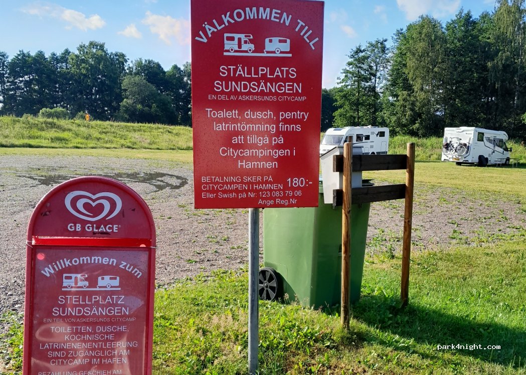 Askersund ist eine wunderschöne Stadt, das ansehen lohnt sich. Das ist der einzige Stellplatz der noch freie Plätze hatte. Leider durch die Bundesstraße sehr laut.