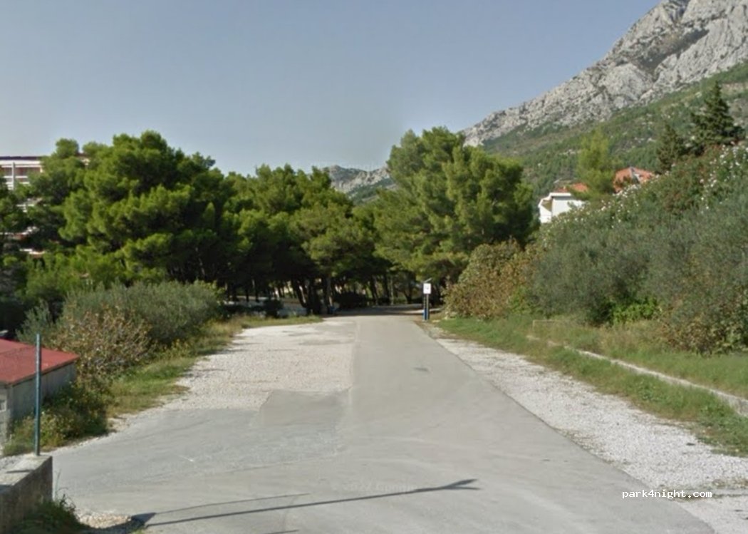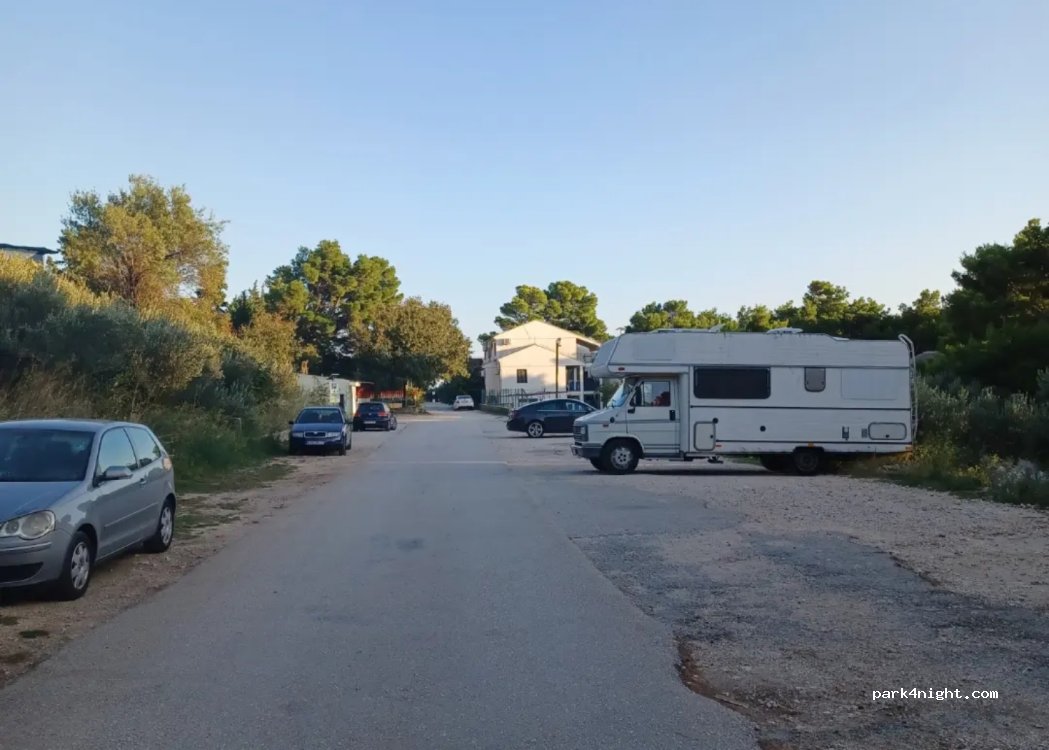 Payable daily parking lot with enough space for motorhomes. There is little shade. Parking machine available but it accepts cash only or you can pay through mobile app. 5 min walk to the beach.