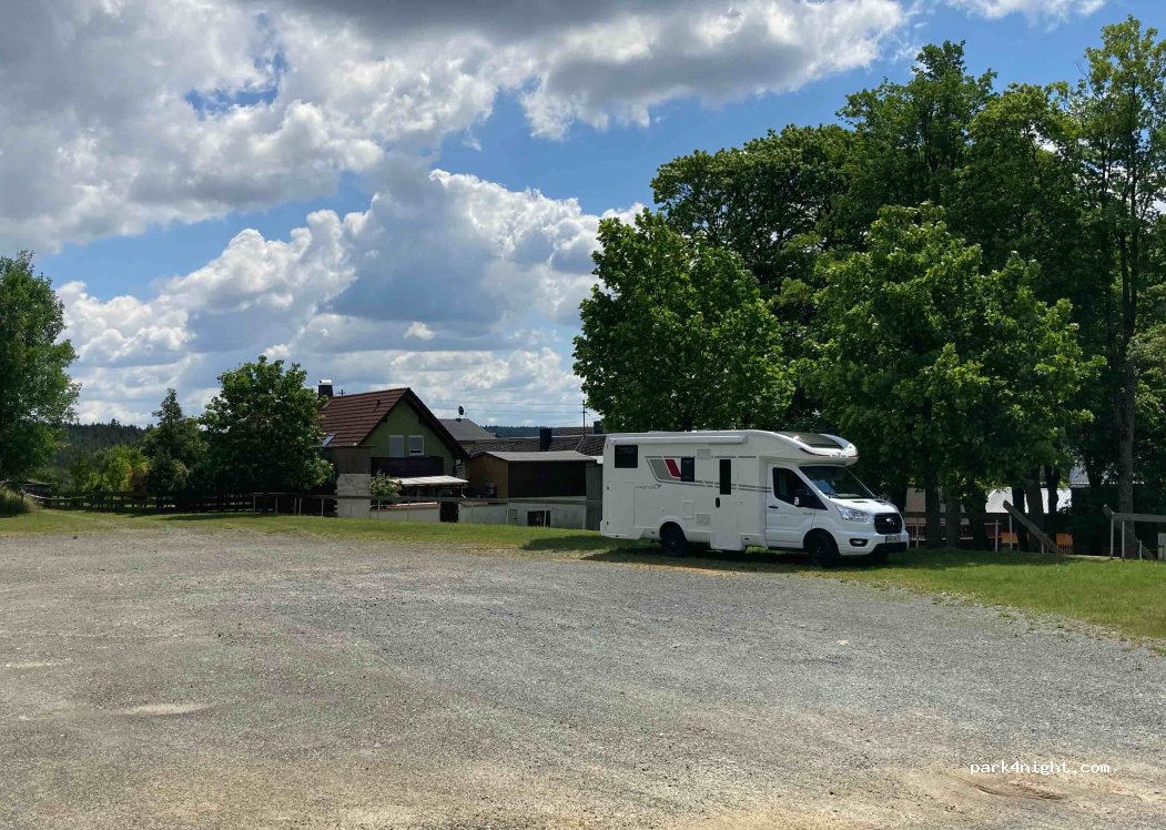 Dieser Parkplatz / Schützenplatz liegt ca. 200m vom Aussichtspunkt Zwölf-Gipfelblick entfernt. Hier ist es aber in der Nacht etwas leiser, da hier keine Straße vorbei geht (Sackgasse). Röslau ist ein kleines gepflegtes und farbenfrohes 2000 Seelen-Dorf.