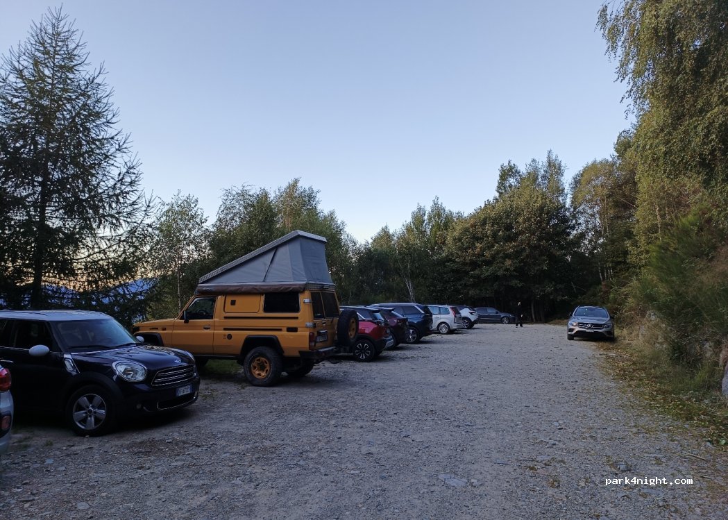 Parcheggio di circa 30 posti al mondo, iniziando le escursioni per il Rifugio di Mennagio (1 ora di cammino). Chiara visione del lago, e nessun passaggio nella notte perché alla fine della strada. Fai attenzione ai camper, probabilmente non molto accessibili perché la strada è difficile da guidare in due curve. Molto bene in furgone, guarda le foto! (Bene, vai alla fine della strada asfaltata)