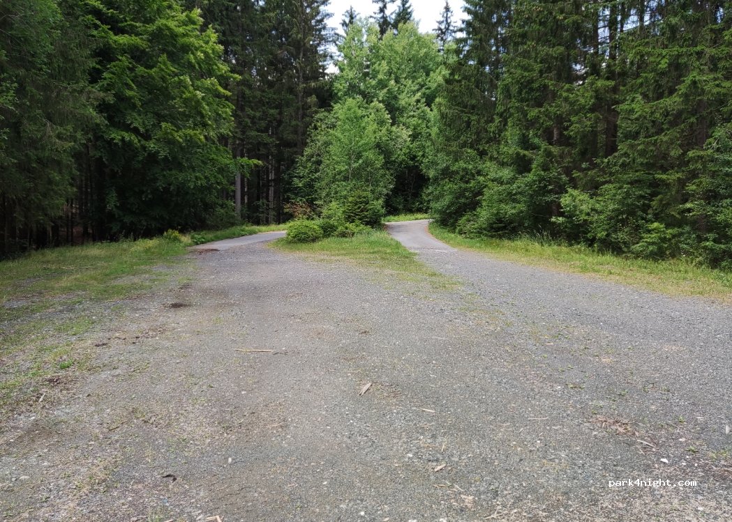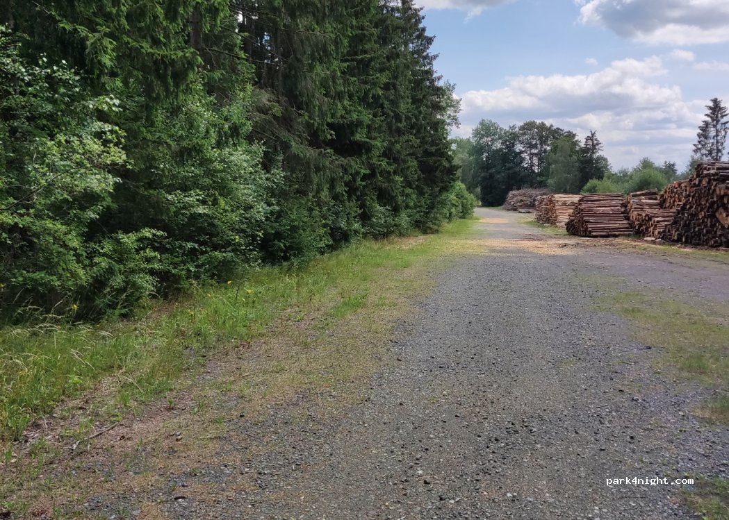 Rückeplatz mit viel Fläche, dirket neben der Staatsstrasse. Getrennt durch Bäume. Nachts recht ruhig.