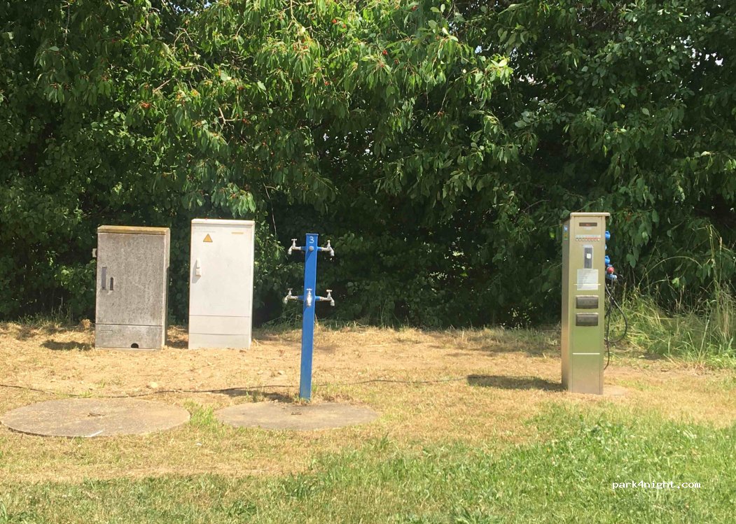 The site is equipped with power connections, supply and disposal facilities. Children's playground nearby (approx. 70 m). The parking space fee is 10.00 € including supply of drinking water and disposal of process water and chemical toilet.