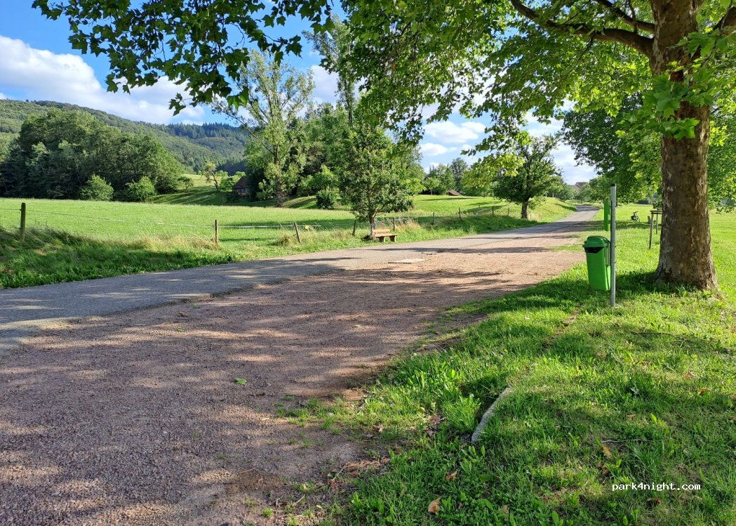 Natur pur :-) Wunderschöner Übernachtungsplatz an einer kleinen schmalen Straße, eher Feldweg. Landstraße in etwas Entfernung ist tagsüber hörbar, nachts ist es hier aber wunderbar ruhig. Schöner Spazierweg in den nahegelegenen kleinen Wald, super für Hundespaziergänge.