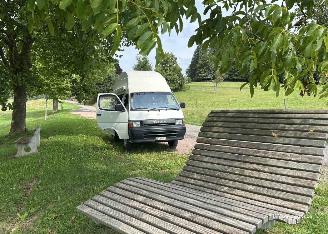 Exceptionnel endroit, superbe paysage ! Il y a une toilette et un accès à l’eau disponibles dans le petit bâtiment du cimetière.