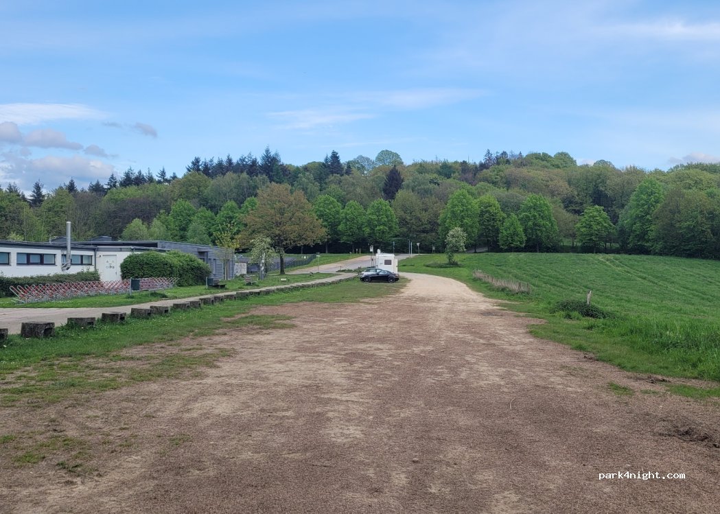 Parking at the forest pool. Nicely situated for walking or cycling. Showers are in the forest outdoor pool. Daily admission to the outdoor pool is 3.50 euros