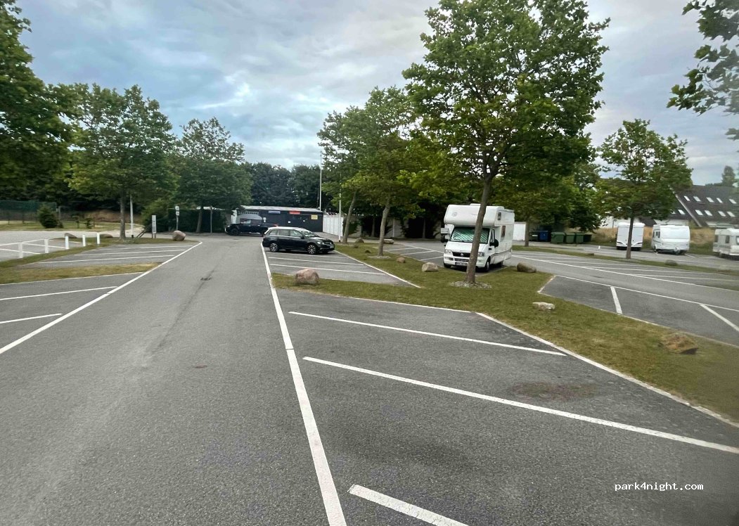 Ce parking fait partie d'un complexe de vacances, mais il s'agit (en plus d'un balisage) d'un parking public et accessible à tous. Les places de parking sont un peu étroites (6 m suffisent à peu près). Le site se trouve dans une zone résidentielle composée principalement de maisons de vacances et relativement calme. Pas de bruit de circulation ou de train. Vous prenez un ticket de parking et la barrière s'ouvre. Le paiement s'effectue à la machine. La facturation est à l'heure, avec un prix maximum pour un ticket journée de 8 euros (été 2023). Pas d'installations d'approvisionnement ou d'élimination.