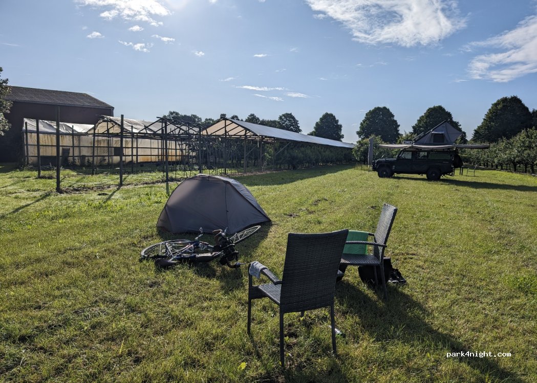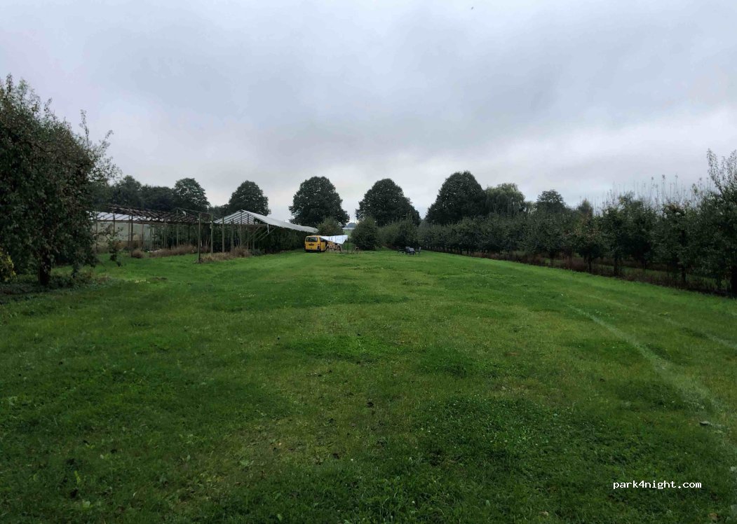 Misschien wat lastig te vinden maar dit is een leuke plek voor een overnachting. We stonden alleen op een riant grasveld, tussen de fruitbomen. De eigenaar is allervriendelijkst en komt graag een praatje maken. Het sanitair is erg basic maar aangezien we het niet hoefden te delen was dat ok voor ons. Super plek voor trainspotters ;-) de trein komt regelmatig toeterend langs. ‘s nachts is het stil.