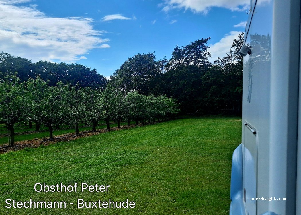 Ruhiger Stellplatz auf einer Wiese mitten in den Obstbäumen. Der Betreiber Peter ist super nett und hilfsbereit. Wir haben unser Wohnmobil 8m hier für 2 Wochen stehen lassen und ab Hamburg eine Kreuzfahrt unternommen. In dieser Zeit stand unser Wohnmobil gut behütet auf der Wiese. Wir können den Obsthof Stechmann sehr empfehlen. Jederzeit gerne wieder.