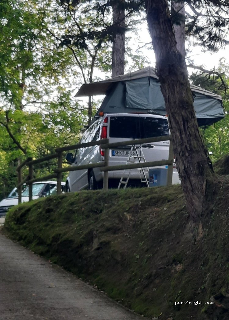 Sehr schöner kleiner Platz, mit Hecken getrennte Stellplätze, grün, eher teuer: am Wochenende, 50€ für einen Van mit Erwachsenen, Strom bekamen wir gratis dazu, weil Nebensaison