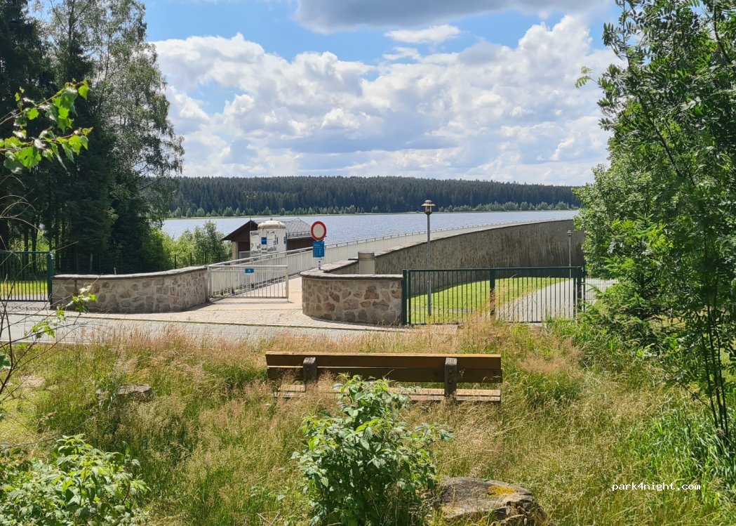 Kostenloser Wanderparkplatz direkt an der Talsperre Muldenberg.