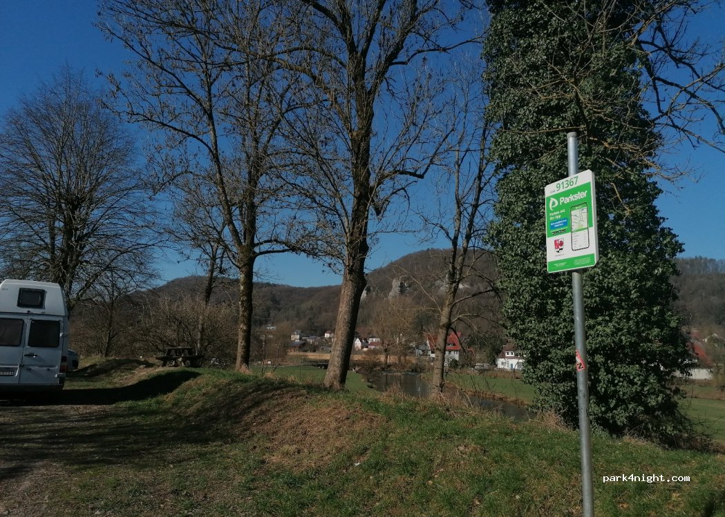 Kleiner Parkplatz, wenn man die Straße weiter fährt (50m), dann links hoch sind auch noch welche vorhanden, darauf beziehen sich die Bilder. Ist direkt an Schwimmbad, Bezahlung nur über die park app möglich.