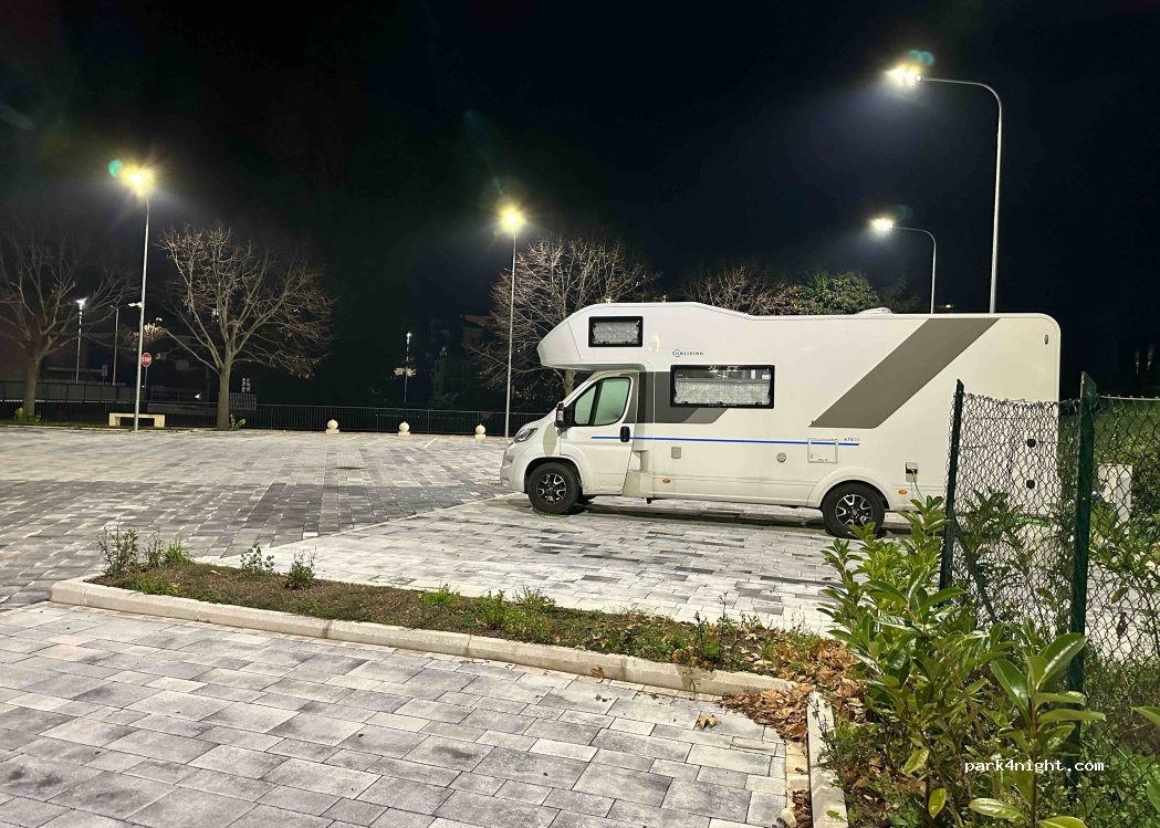 è un grande parcheggio con due posti riservati ai camper ma ovviamente ci si può parcheggiare anche in tutti gli altri posti. Attenzione, informatevi se c'è la fiera alla mattina: la gente riempie la piazza di automobili e non riuscirete ad uscire dallo stallo. Parcheggiano nella zona preposta allo scarico delle acque grigie quindi niente scarico. le acque nere si possono scaricare ugualmente