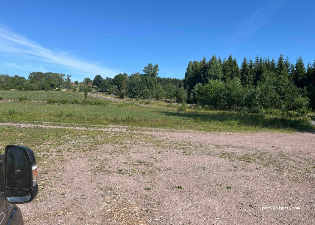 Quiet spot next to the Katthulthof on the left before the official parking lot. We visited Katthult, took a bike tour and returned in the evening. Had a pleasant stay. Payment can be done in SEK or EUR in a mailbox.