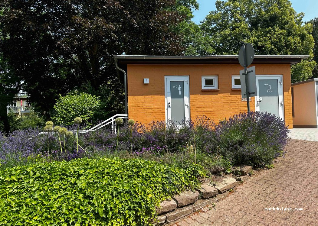2 grandes salines avec toilettes publiques propres, également adaptées aux personnes en fauteuil roulant.
