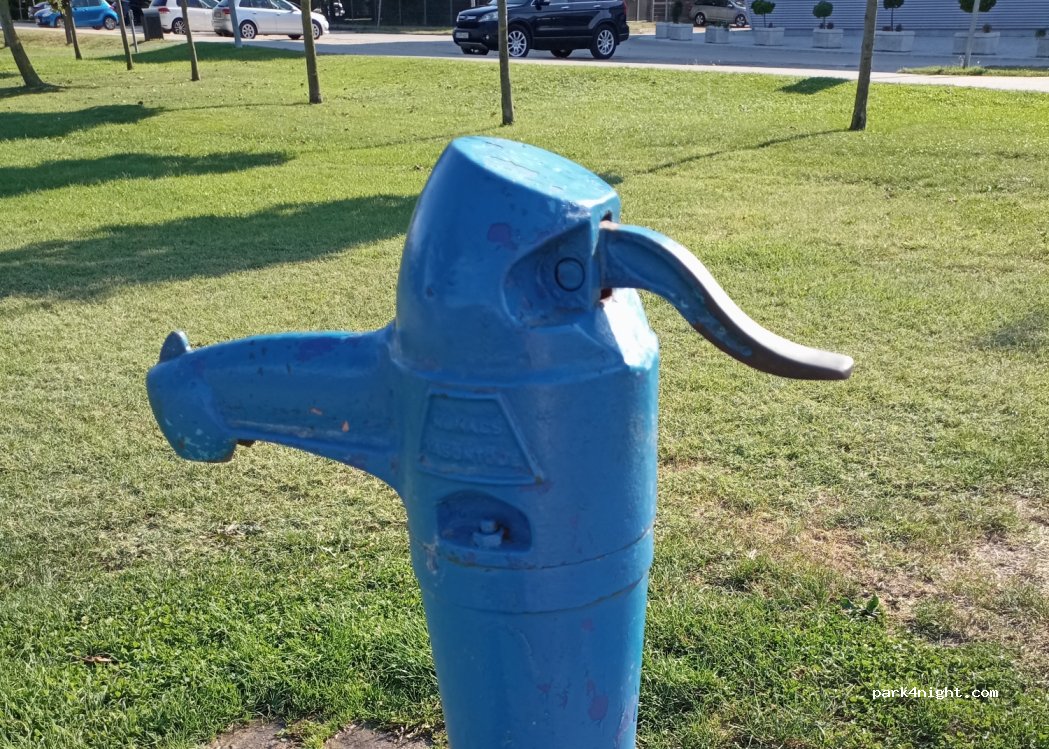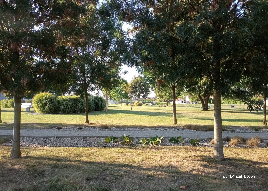 Gut und sicher übernachtet. Trinkwasserpumpe ohne Schlauchanschluss auf der Wiese Nähe Brücke. Kleiner Fluss und Parkanlage, attraktiv auch für Hunde. Einziges Manko: der Platz ist nicht geteert und sobald Wind aufkommt, wird die Erde vom Parkplatz aufgewirbelt oder bei Regen gibt's Matsch.