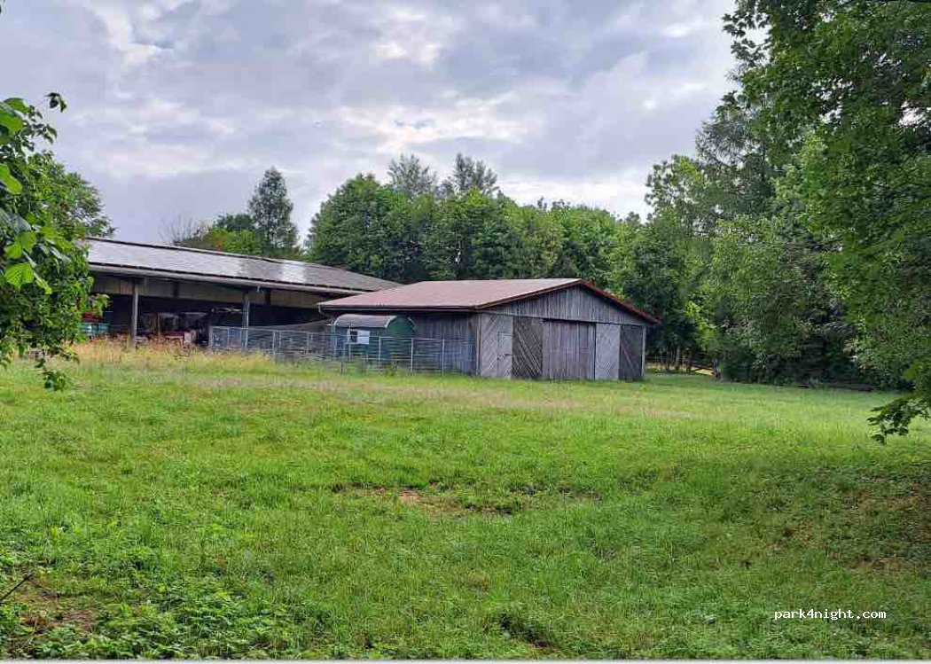 Kleiner einfacher Stellplatz für nicht übermäßig große Fahrzeuge (bis ca. 8 m) für eine Zwischenübernachtung – oder auch einen kurzen Aufenthalt - auf einer Wiese neben der Reithalle eines kleinen biologisch betriebenen landwirtschaftlichen Reiterhofes. Es ist Platz für 3 Wohnmobile.