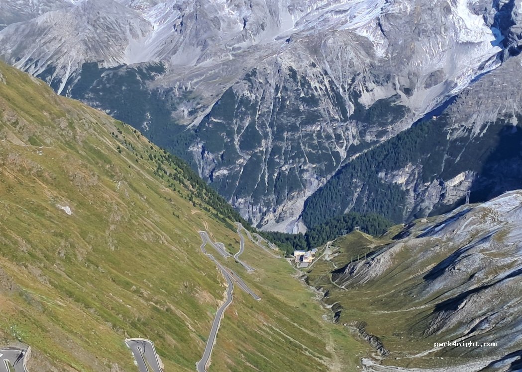 Grand soleil se lève de cet endroit. Lieu silencieux la nuit, mais au matin, beaucoup de voitures roulent à passo Stelvio. Pas d'eau ou de toilettes