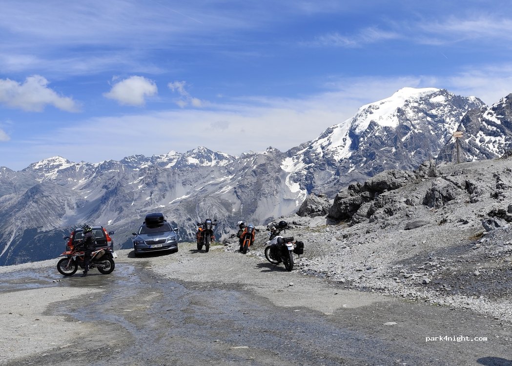Great sun rise from this place. Silent place at night, but at morning lot of cars rides to passo Stelvio. No water or toiletts