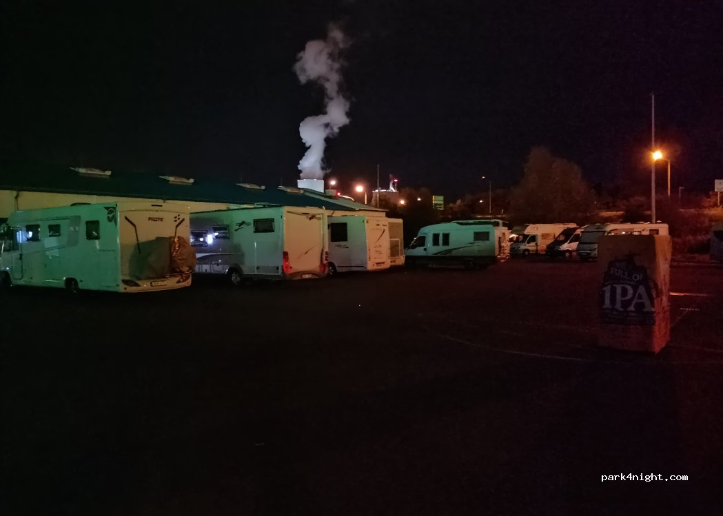 accanto strada ma notte tranquilla. molti camper, stazione rifornimento accanto. alle 7.30 del mattino taglio erba accanto ai camper senza riguardo. ovvio che è un modo per protestare del negozio adiacente, si può fare in qualunque altro momento della giornata. ma non taglieranno sempre l'erba insomma....