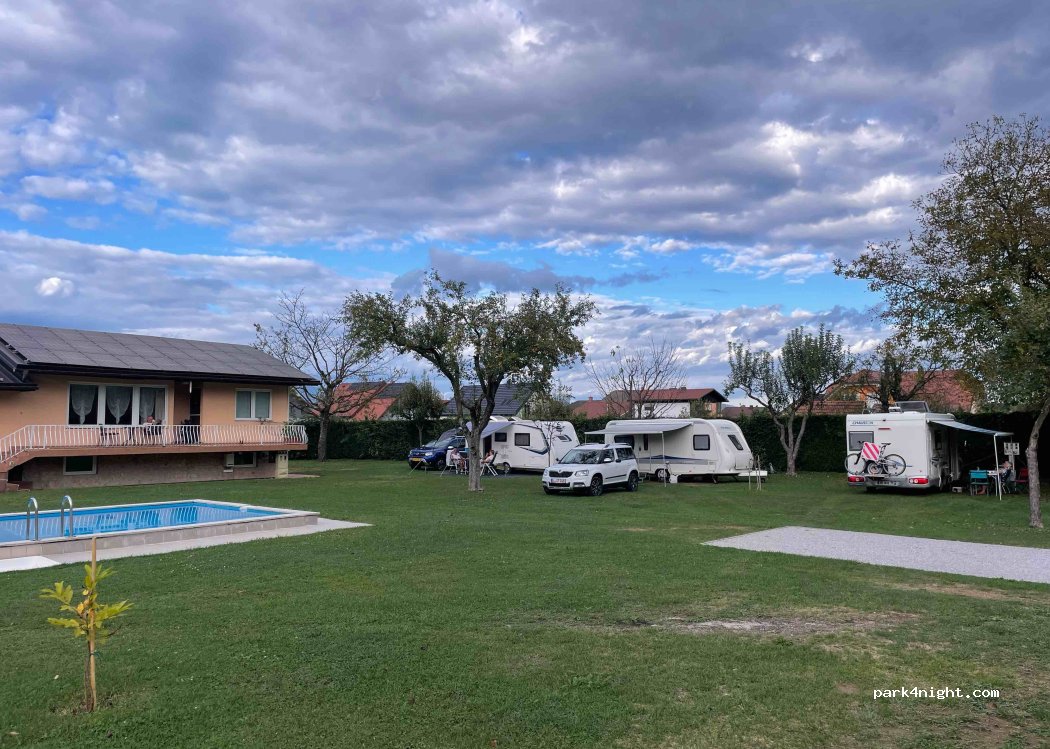 Petit camping familial et convivial. Calme. Ok pour van, camping-car et tentes. Piscine. Douches, toilettes, divers points d'eau, électricité. Emplacement central pour visiter Celje, Ljubljana etc. (moins d 1 heure). Les propriétaires sont très sympathiques. Pour 3 personnes et un chien 1 grosse bière slovène = 25 €. Parle anglais et allemand.