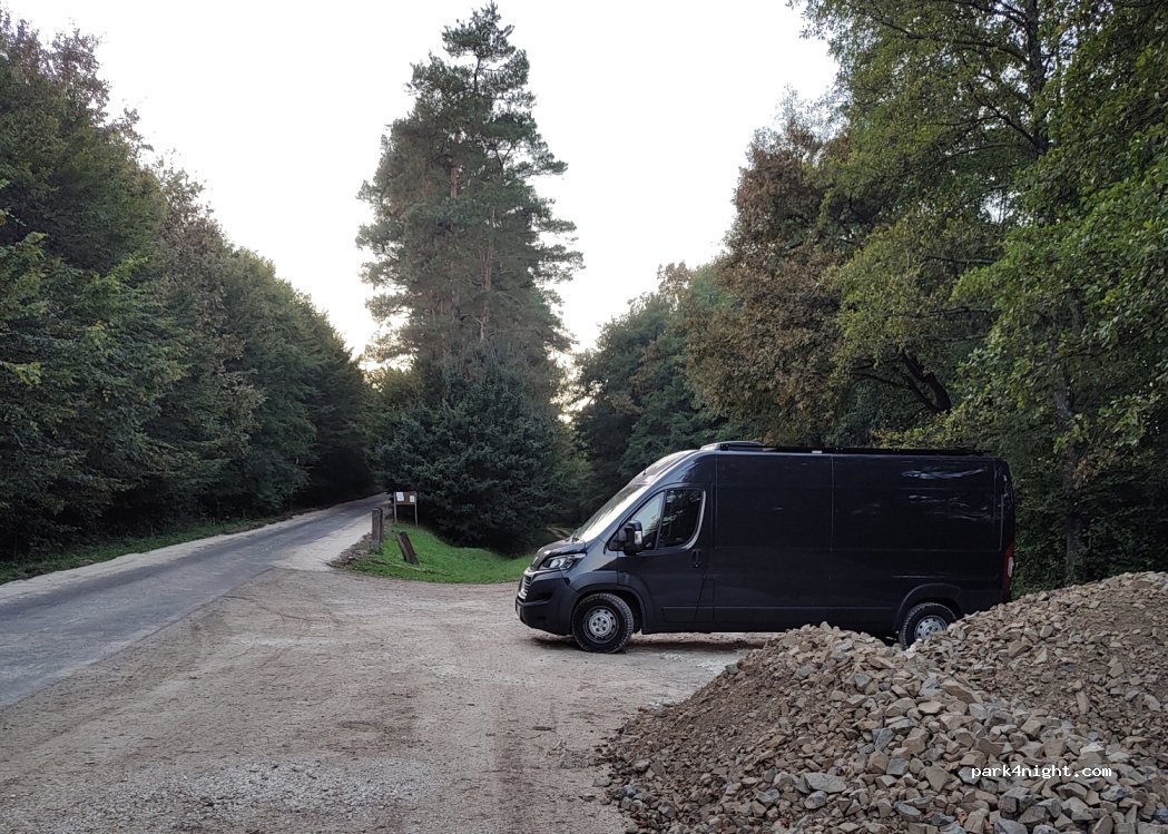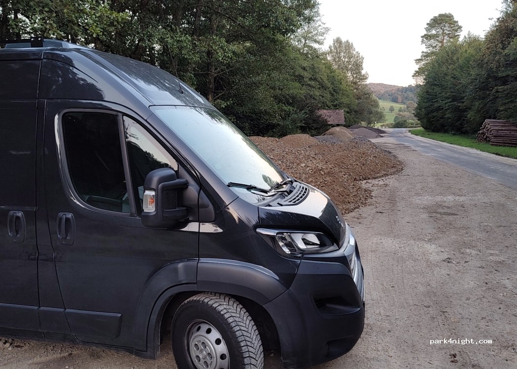 Emplacement le long d’une route forestière à 50 m d’une route de campagne. Places de parking pour départs de chemin de Grande Randonnée. Calme, aucun véhicule ni promeneur. Vous y serez entourés de chevreuils, biches et sangliers. Un endroit comme on les aime à garder propres et impeccable sans laisser de traces de votre passage. Tous les chemins autour sont en gravillons avec de nombreuses possibilités de vous y garer sans souci.