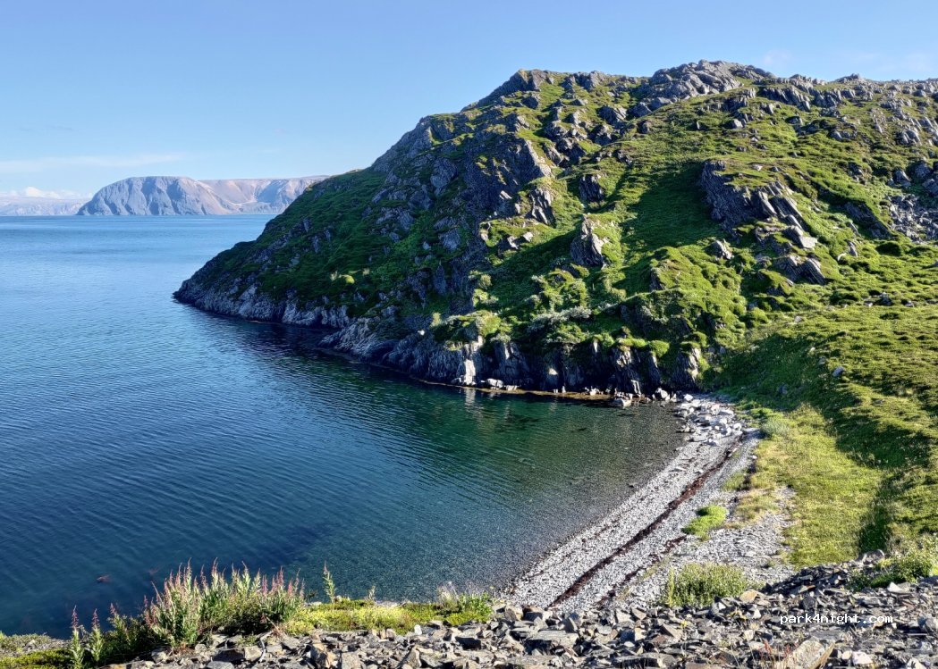 small pebble beach below