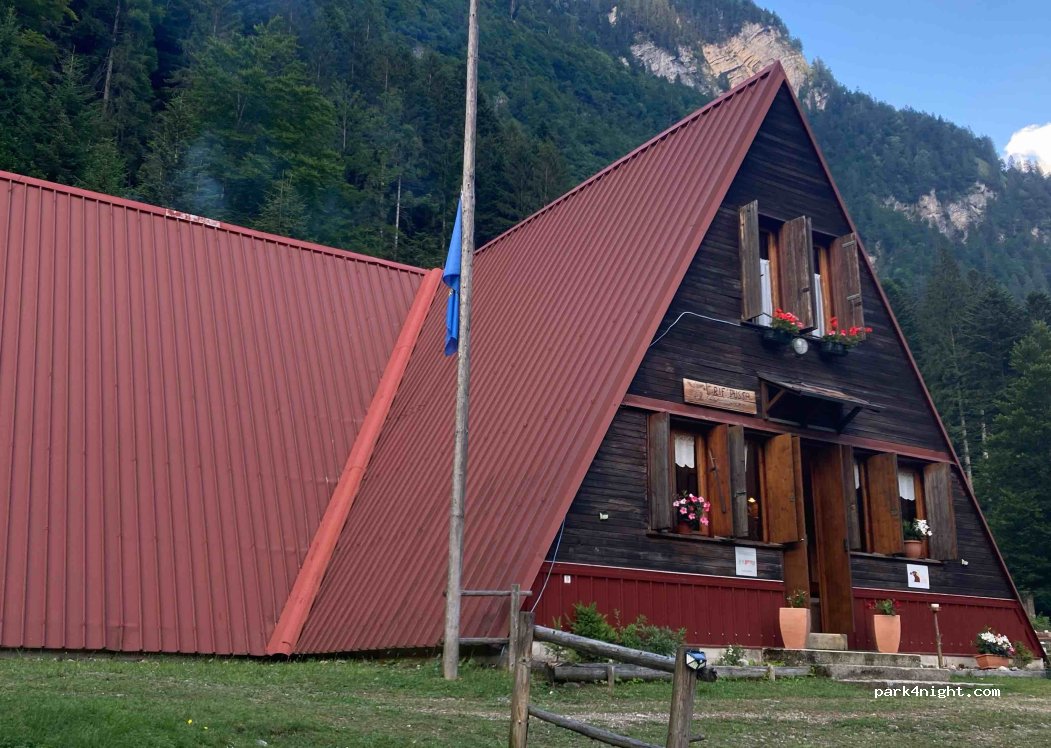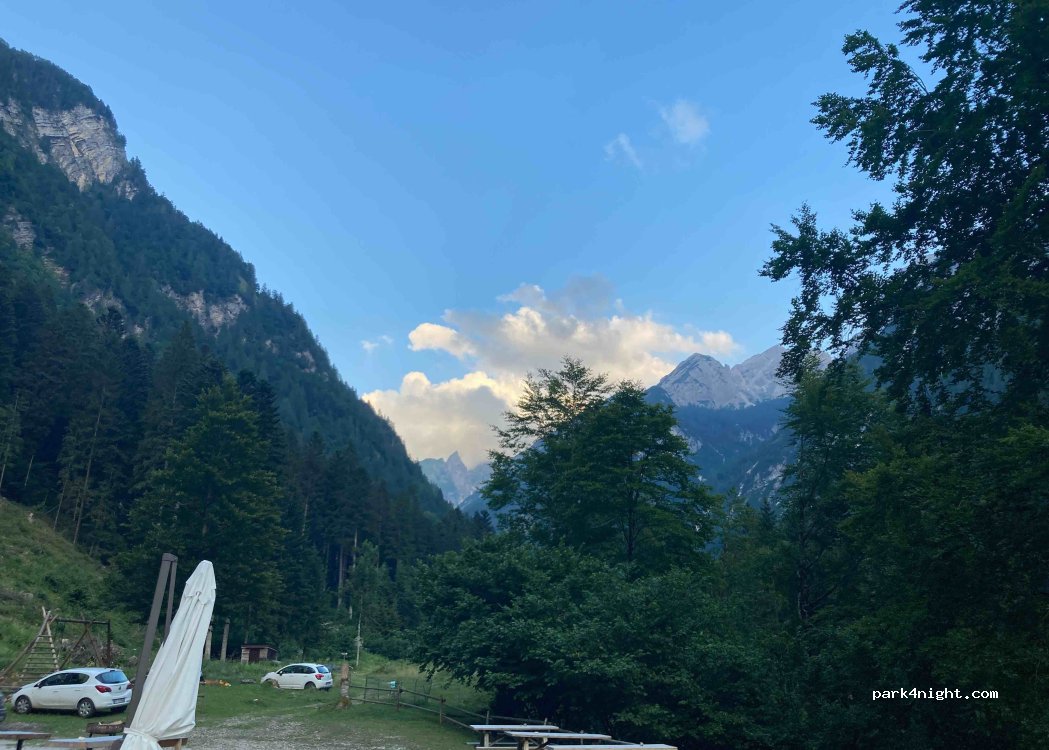 Amplio estacionamiento con posibilidad de pasar la noche en Rifugio Pussa excelente base para excursiones, excelente refugio personal muy amable excelente comida excelente camino de acceso 14 km estrecho, se puede atravesar fácilmente con camionetas o múltiples campistas pequeños posibilidades de detenerse en varias áreas es importante dejarlo porque sucede que el lugar se encuentra dentro del parque de los Dolomitas friulanos