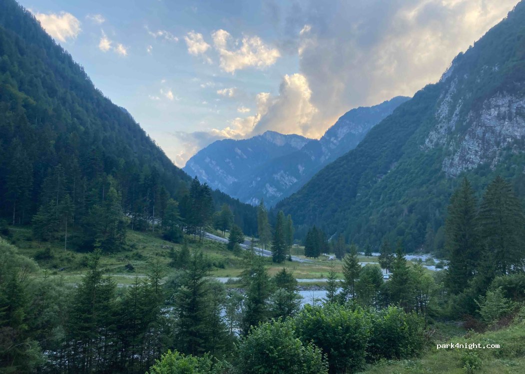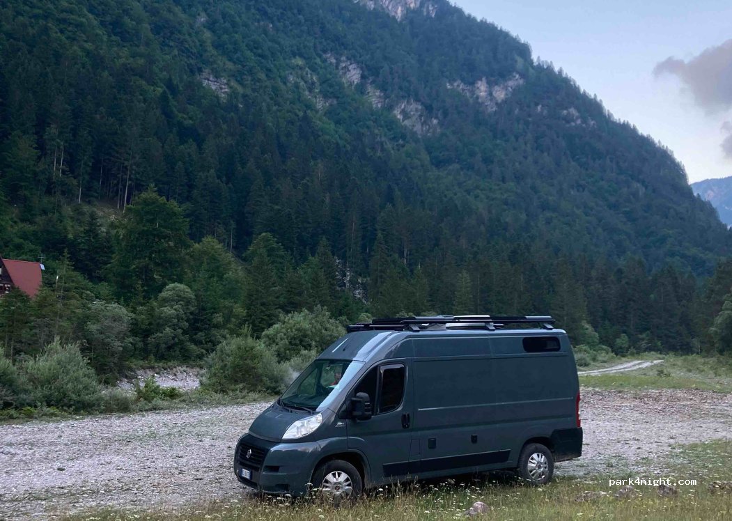 Large car park with possibility of overnight stop at Rifugio Pussa excellent base for starting excursions, excellent refuge very kind staff excellent food excellent access road of 14km narrow, it can be traveled easily with vans or small campers multiple possibilities for stopping in various areas it is important to leave it as it is found the spot is located inside the Friulian Dolomites park