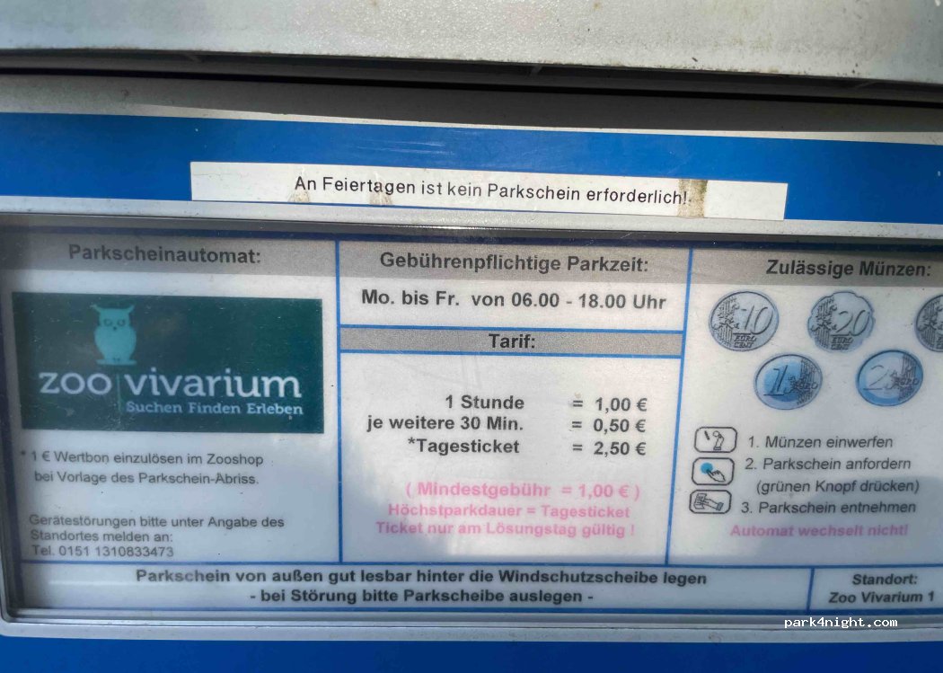 Ideal para una escala en Darmstadt. Gracias a los árboles altos hay mucha sombra por la mañana incluso en verano. El estacionamiento de pago está disponible de lunes a viernes de 6:00 a. m. a 8:00 p. m. Fuera de este horario se puede aparcar aquí sin problemas con una autocaravana de 6,40 m. El zoológico, un buen restaurante italiano y un parque para perros se encuentran a poca distancia. Alrededor de las 8:45 a. m., llegan los visitantes del zoológico adyacente. Entonces las cosas pueden ponerse un poco agitadas, especialmente los fines de semana.