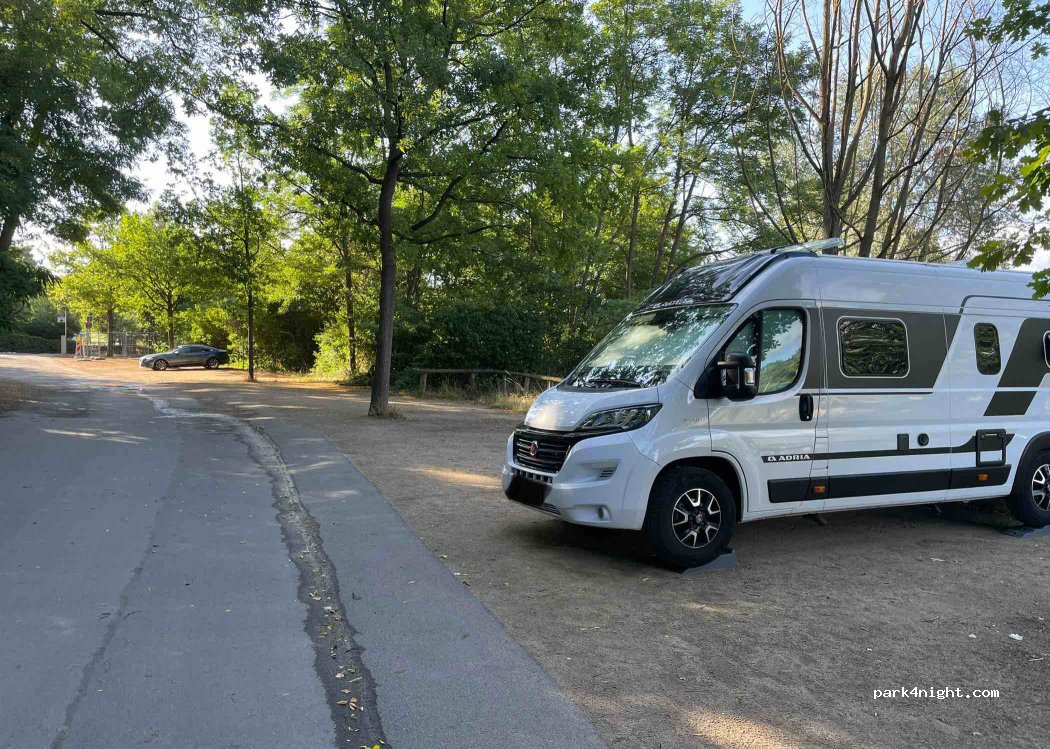 Idéal pour une escale à Darmstadt. Grâce aux grands arbres, il y a beaucoup d'ombre le matin même en été. Un parking payant est disponible du lundi au vendredi de 6h00 à 20h00. En dehors de ces horaires, vous pouvez vous garer ici sans problème avec un camping-car de 6,40 m. Le zoo, un bon restaurant italien et un parc à chiens sont accessibles à pied. A partir de 8h45 environ, les visiteurs du zoo adjacent arrivent. Ensuite, les choses peuvent devenir un peu agitées, surtout le week-end.