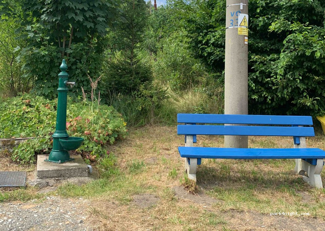 Trinkwasserquelle mit netter Parkbank