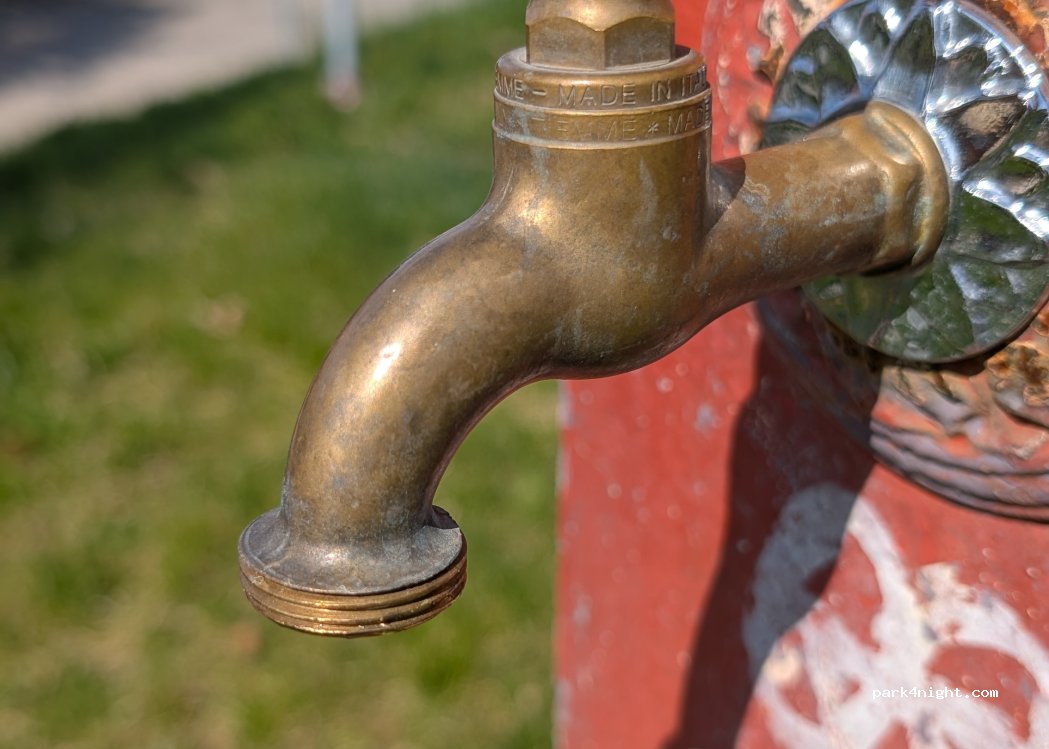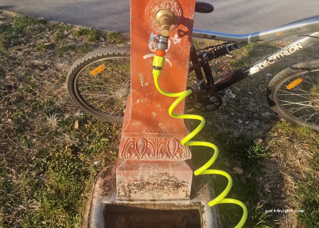 Point d'eau avec robinet fonctionnel a cote d'une aire de jeu pour enfants. Prévoir un peut de longueur de tuyau (10 mètres environ).