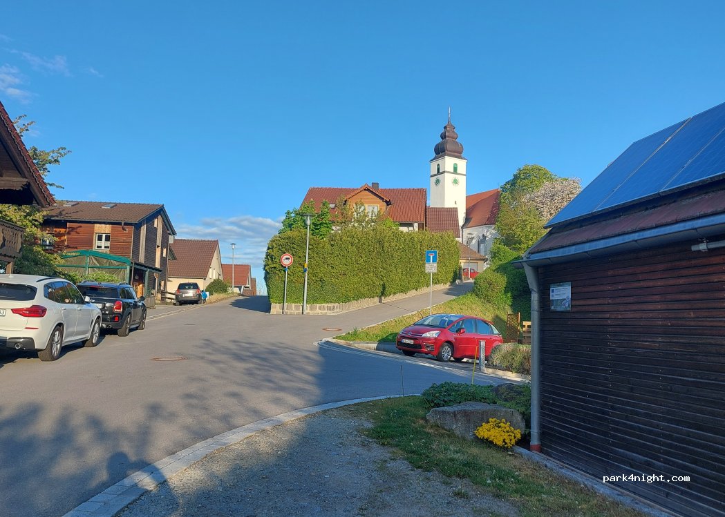 Parkeerterrein midden in dorp, geen voorzieningen. Er staan veel personenauto’s geparkeerd. Wij zijn doorgereden.