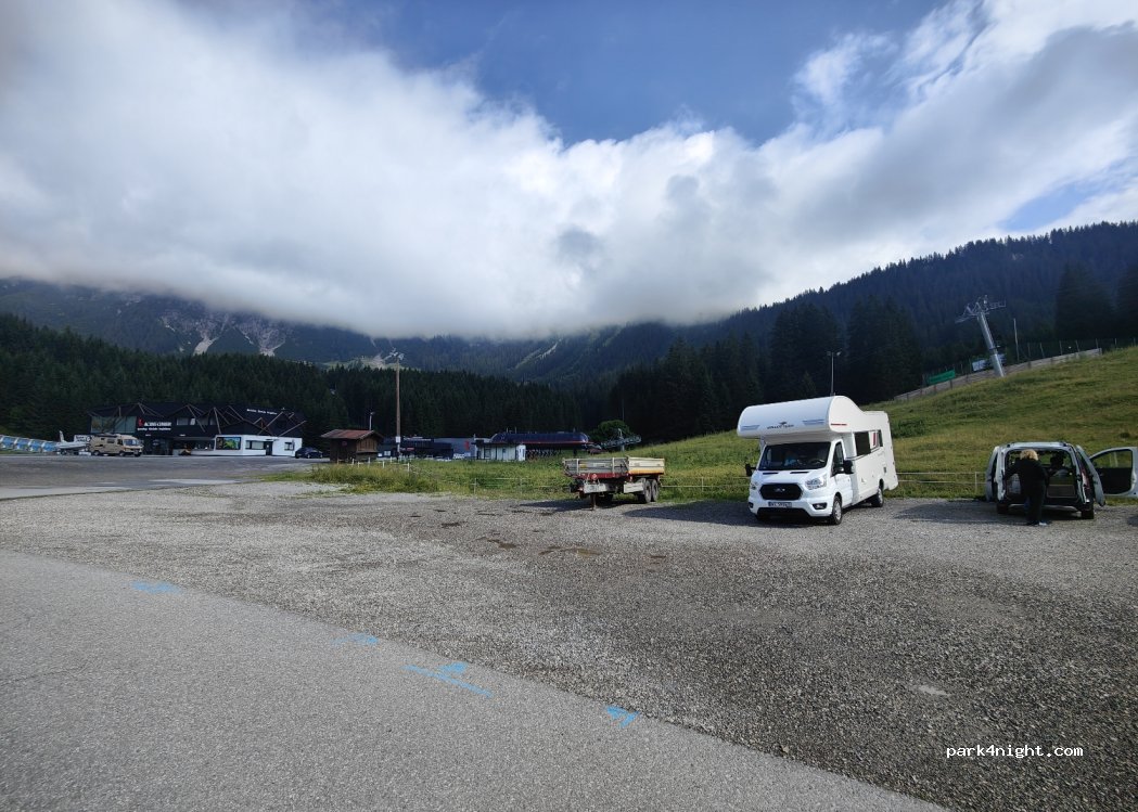 Velké parkoviště. Nedá se zůstat přes noc. Hned vás nahlásí na policii. V Tyrolsku jedině zůstat v kempech.