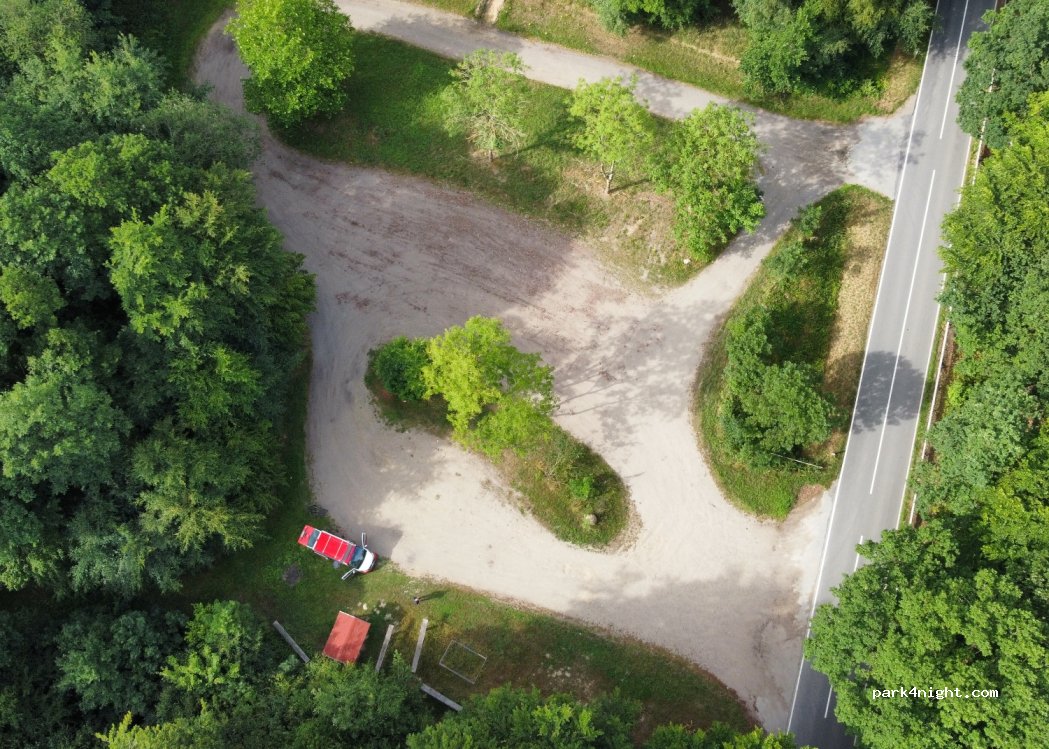 It is a kind of hiking car park next to the TV tower - however, the TV tower is closed. The place offers many parking spaces and is fairly flat. The road is minor and very little traffic. Very quiet at night!
