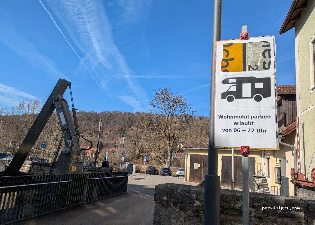 El aparcamiento está situado en el centro del museo, en el molino municipal. Estacionamiento solo de 6:00 a.m. a 10:00 p.m. Directamente en Altmühle, a 1 minuto del centro. Terreno llano. Acceso a través de la plaza del mercado y Klosterstrasse. Buena base para explorar la ciudad y el castillo. En caso de riesgo de inundaciones. El uso está limitado a 4 horas.