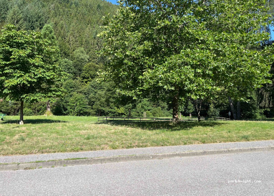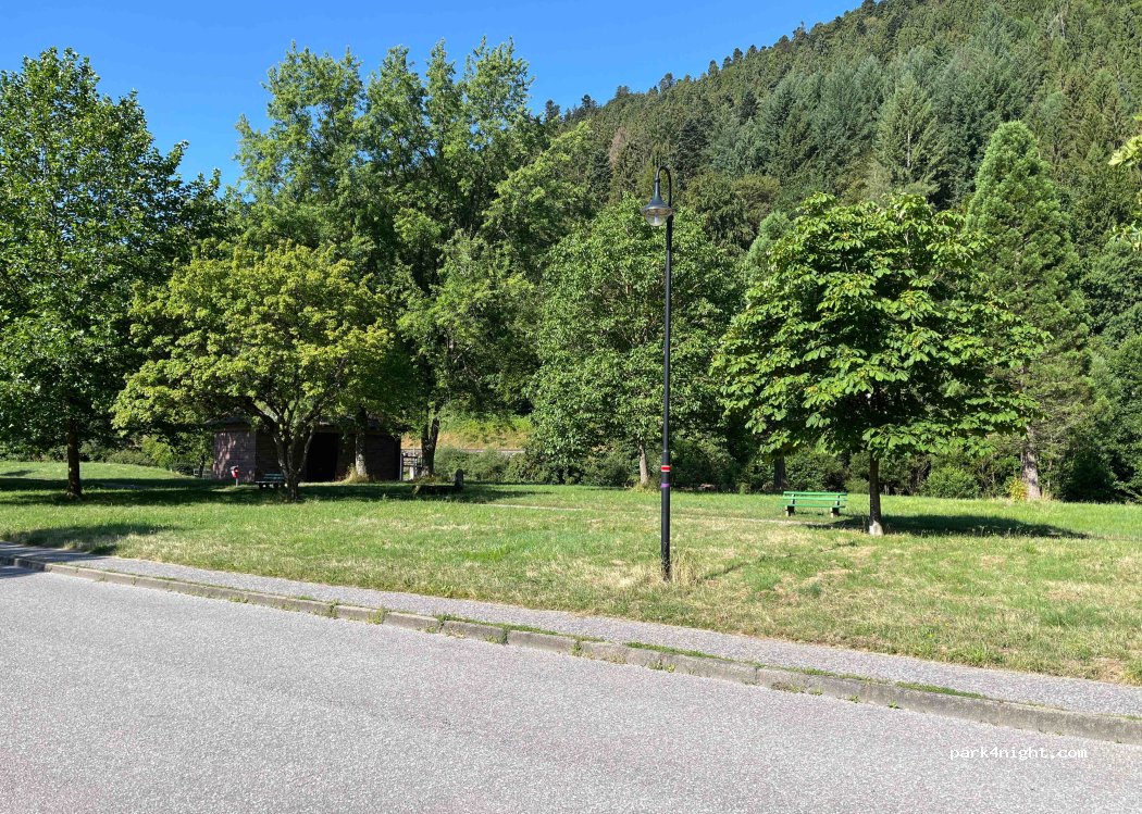 Endroit calme, à côté de la caserne des pompiers. Petit ruisseau disponible. Point d'eau (pas d'eau potable) disponible. Lieu de promenade populaire pour les propriétaires de chiens.