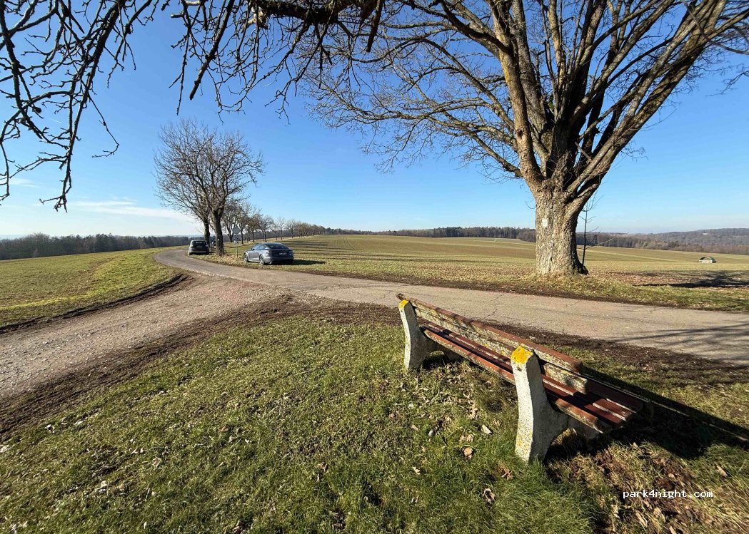 Hmja, es ist halt ein Grünstreifen zwischen Teerweg und Feld. Heute gut beparkt. Eher was für kompaktere Womos und Freisteher. Landstraße 30m entfernt. Aussicht sehr schön.