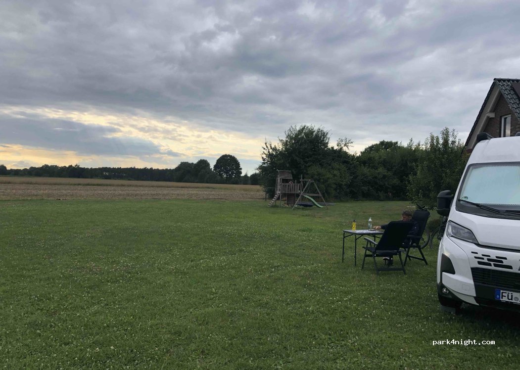 Super Wiese. Netter Gastgeber. Sind zwar nur 4 Plätze angegeben, standen aber wohl mehr wegen dem Heideblütenfest. Wiese war gerade und lag direkt zwischen Wald, Feld und Haus. Für eine Übernachtung ideal.
