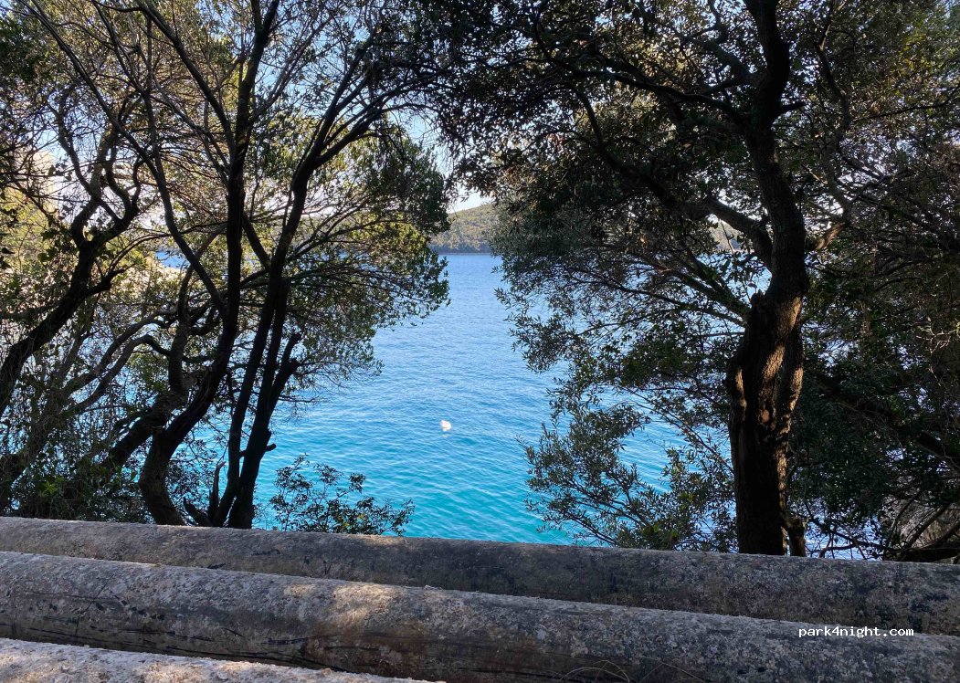 Super Lage für einen Badetag an einer kleinen, wunderschönen Bucht. Wenn man dem kleinen Trampelpfad durch den Wald folgt trifft man auf eine atemberaubende Aussicht über die Meereszunge. Der Weg dorthin ist etwas holprig, jedoch auch mit größeren Autos und ohne Allrad machtbar. Der Parkplatz ist etwas klein aber schön und natürlich mit Schatten und einer Mülltonne. Wir wollten Übernacht bleiben wurden jedoch von einer Frau gewarnt, dass das Campen hier verboten sei und die Polizei manchmal vorbeischaue. Zum Übernachten also sehr riskant ansonsten wunderschön!! (Wir haben nicht übernachtet)