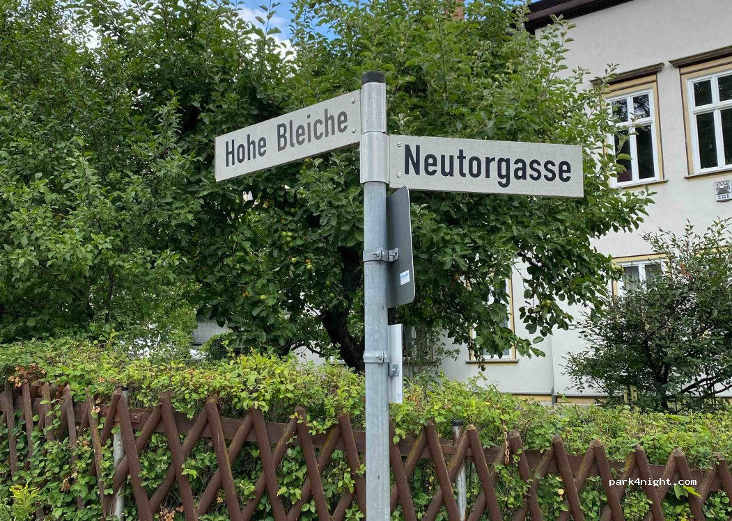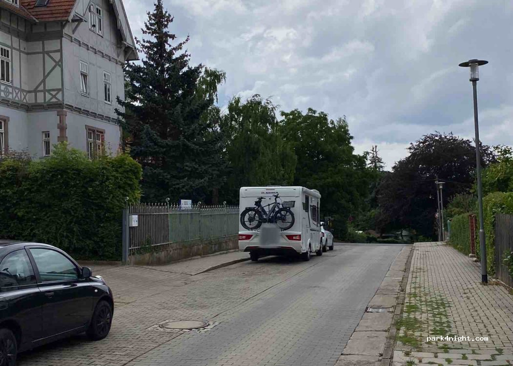 Free parking on the hard shoulder. This is also wide enough for mobile homes. There is no explicit motorhome parking sign here, but also no prohibition sign. From here you are in a few minutes in the historic old town of Arnstadt.