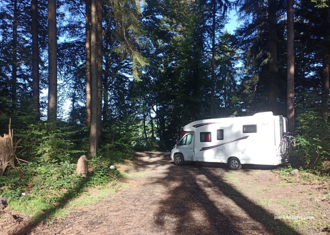 An für sich ein netter Platz zum übernachten, jedoch etwas „spuki“ hier steht noch ein umgebautes ehemaliges DHL-Fahrzeug und es kommen und fahren in zeitlichen Abständen PKWs… nicht sehr angenehm und schon verwunderlich dass dies von den Besitzer so gewollt ist.