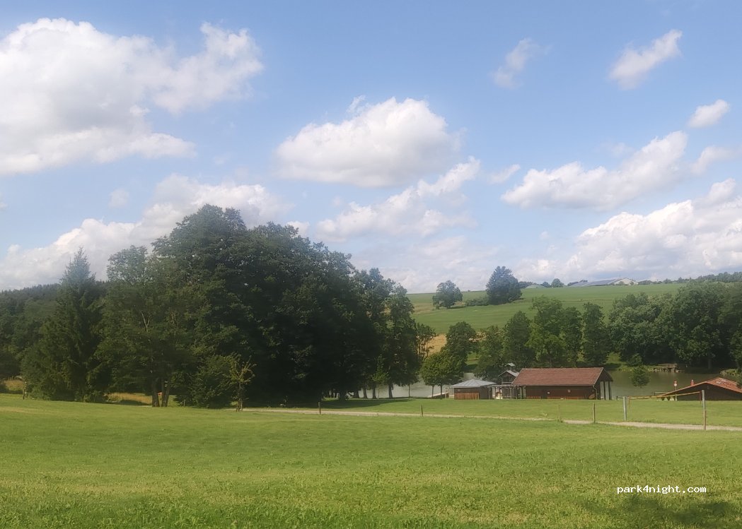 Parken auf einer Wiese am See. Camping ist nicht erlaubt.