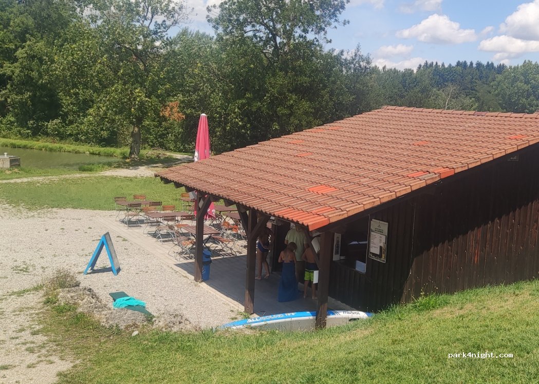 Lac très beau et idyllique avec maison de toilette et kiosque. Sur la rive opposée se trouve une plage nudiste.