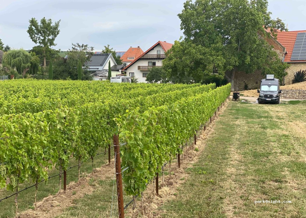 At the winery there are three parking spaces on a meadow at the edge of the vines. The parking space can be used 24 hours a day. If you buy wine, there is no parking fee. Wine tasting possible by arrangement. A supply and disposal station is located approx. 800 m away at the gas station at the end of the town in the direction of A61/Gundersheim.