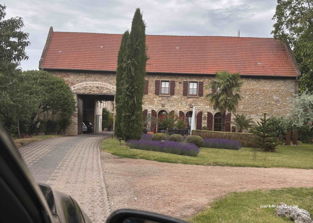 En la bodega hay tres plazas de aparcamiento en un prado al borde de las viñas. La plaza de aparcamiento se puede utilizar las 24 horas del día. Si compras vino, no hay tarifa de estacionamiento. Degustación de vinos posible con cita previa. Una estación de suministro y eliminación se encuentra a unos 800 m en la gasolinera al final de la ciudad en dirección a A61/Gundersheim.