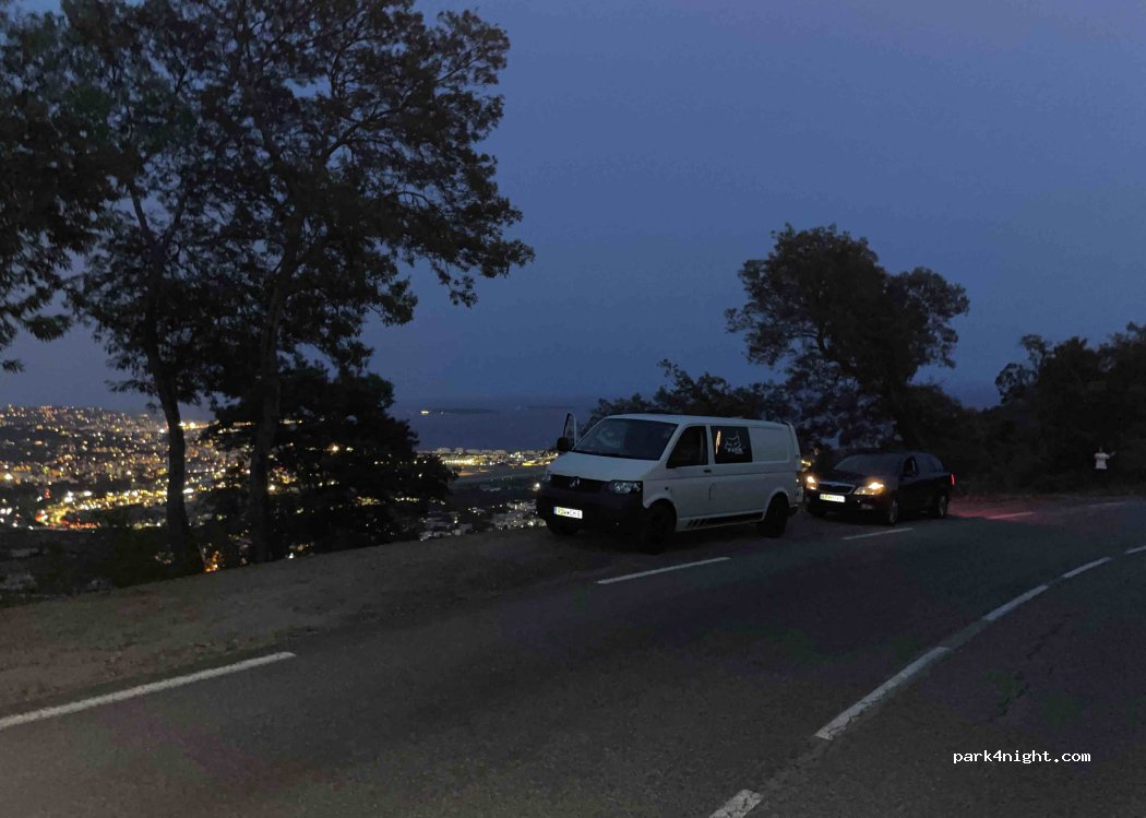 Stunning "car park" with views over the entire bay of Cannes. Here you can find a bay where there is enough space for a VW bus. Camper is too close to the abyss. Very little-used road and a view that we have not had at any place on our trip. A ban by sign or the like is not to be found. We want to share this place with everyone who enjoys great views as much as we do :)