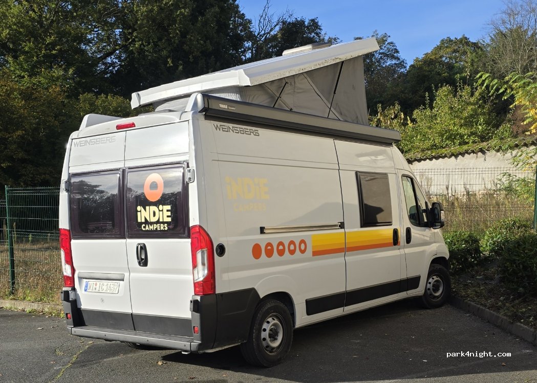 Zeer rustig geslapen. P-plaatsen voor auto’s; bus 6 meter lang steekt iets uit. Niet vlak.
