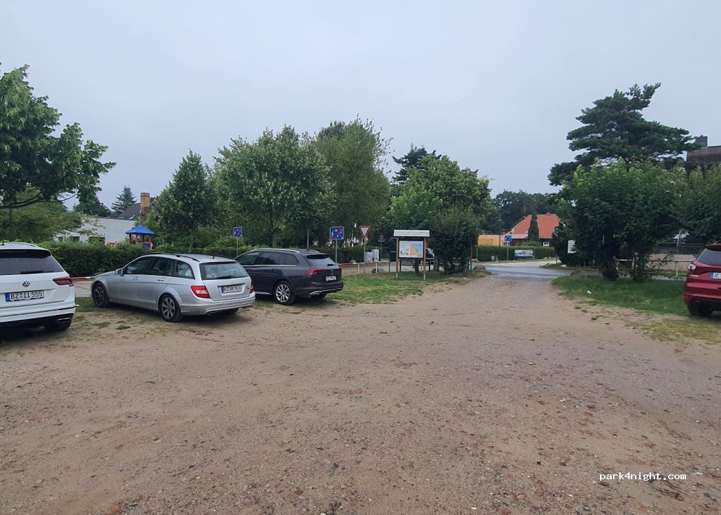 Einfach großer Parkplatz auch für Wohnmobile. Übernachtung nicht erlaubt. In der Nähe der Seebrücke.